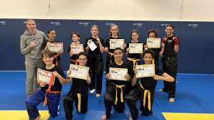 À savoir : tous les coups de pied et poing se font au-dessus de la ceinture, les coups de coudes et genoux sont interdits.